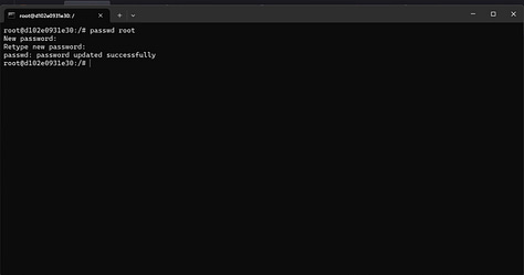 cat /etc/shadow | grep rootConfigure the root password inside container1 to enable password based SSH authentication using the following command: