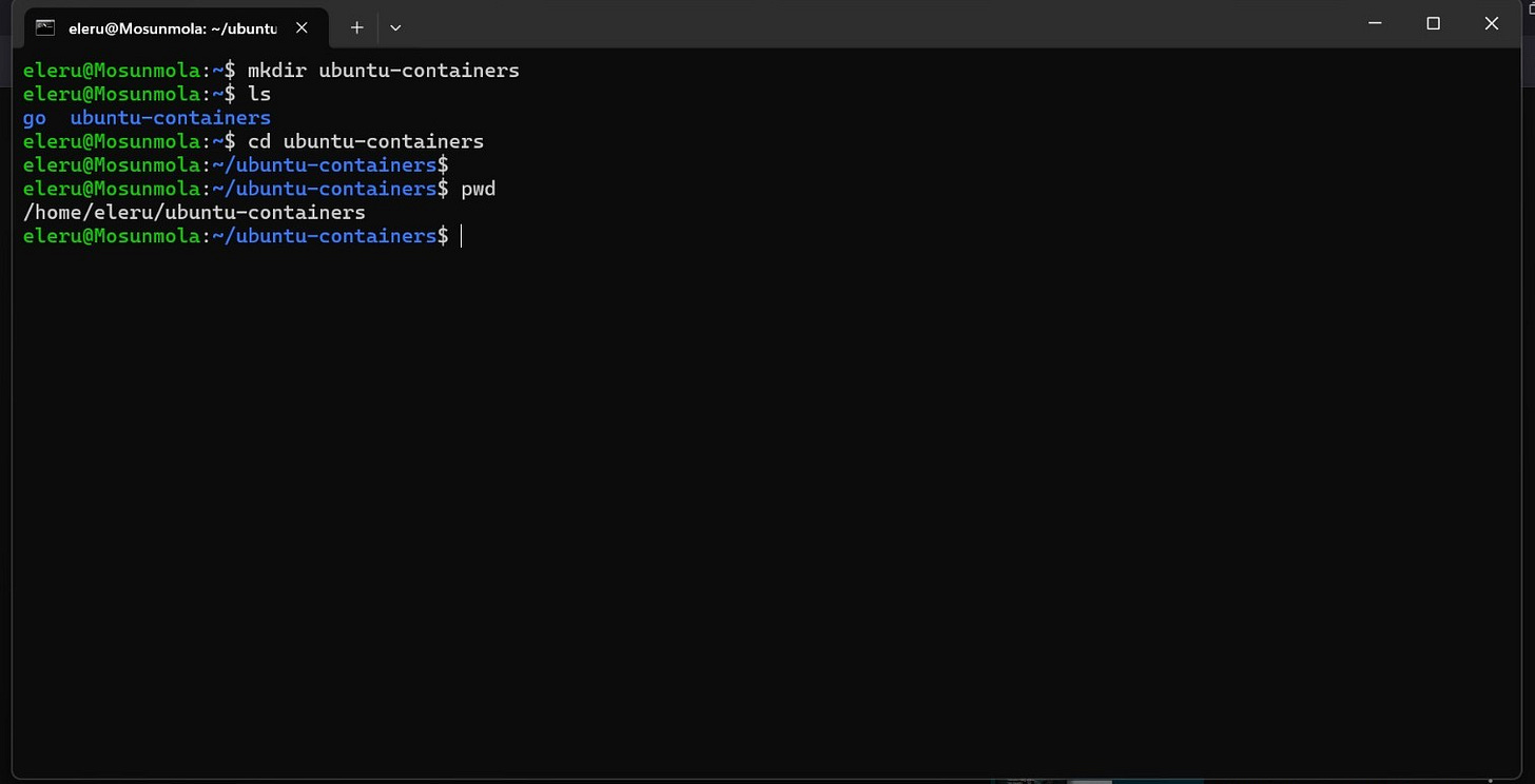 docker pull ubuntuCreate a new folder for the project using the following command: