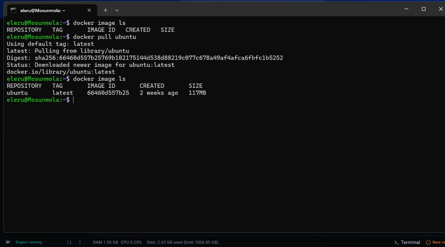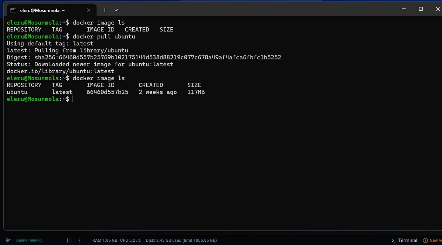 Pull the latest Ubuntu image from Docker Hub using the following command: